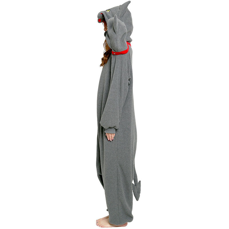 Step legends with the Cerberus Kigurumi! This fun and cozy outfit features a big black design with bulging muscles, a long tail, and three fierce heads ready to bring mythical excitement to your day. Perfect for lounging or themed events, it offers comfort while letting you channel the power of the legendary beast with a playful twist.