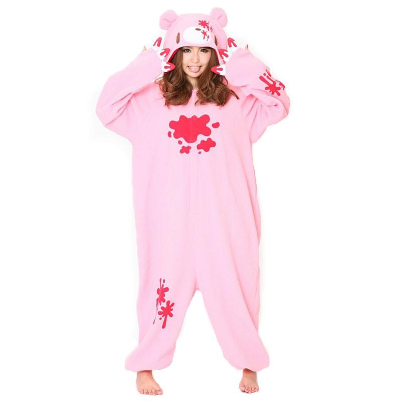 Pink Gloomy Bear Kigurumi comes with big, bloodied claws and cute tail on the back.