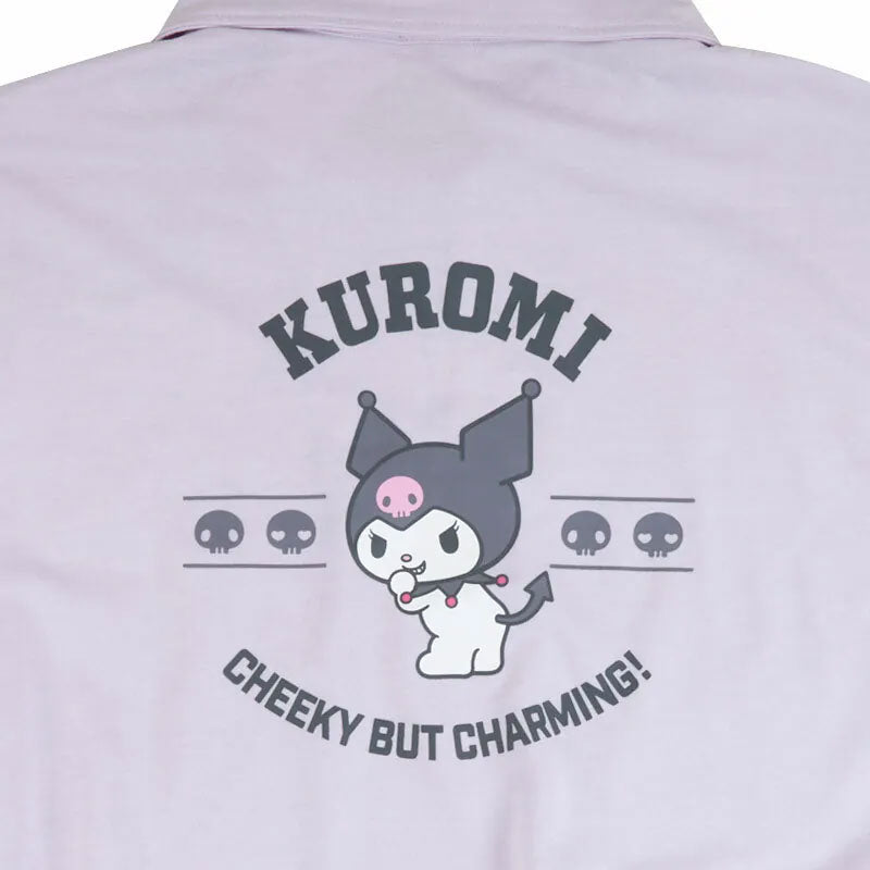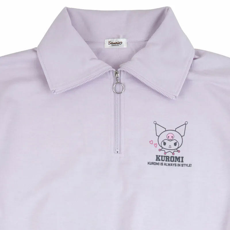 Stay cozy and stylish in the Kuromi Quarter Zip Sweatshirt! This cute sweatshirt features a quarter zip collar with an adorable face graphic of Kuromi on the front, and a dynamic full body graphic on the back with a playful quote. Perfect for anyone looking for a comfortable and fun addition to their wardrobe!