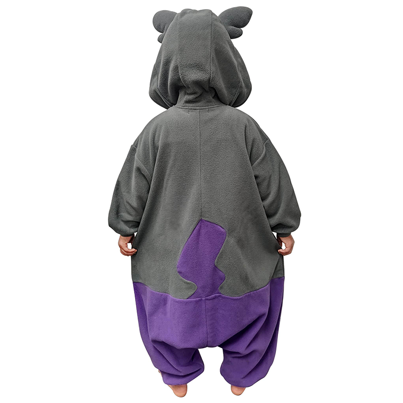 The Morpeko Hangry Kids Kigurumi brings the fun and feisty energy of Morpeko's Hangry Mode to your little Pokémon trainer. Made from soft fleece, this cozy onesie features a bold purple and gray design with an embroidered hood that perfectly captures Morpeko’s playful expression. With a loose fit, button-up front, and handy side pockets, it’s perfect for playtime, costume parties, or snuggling up. Officially licensed and designed for comfort and fun, it’s a great choice for any young Morpeko fan.