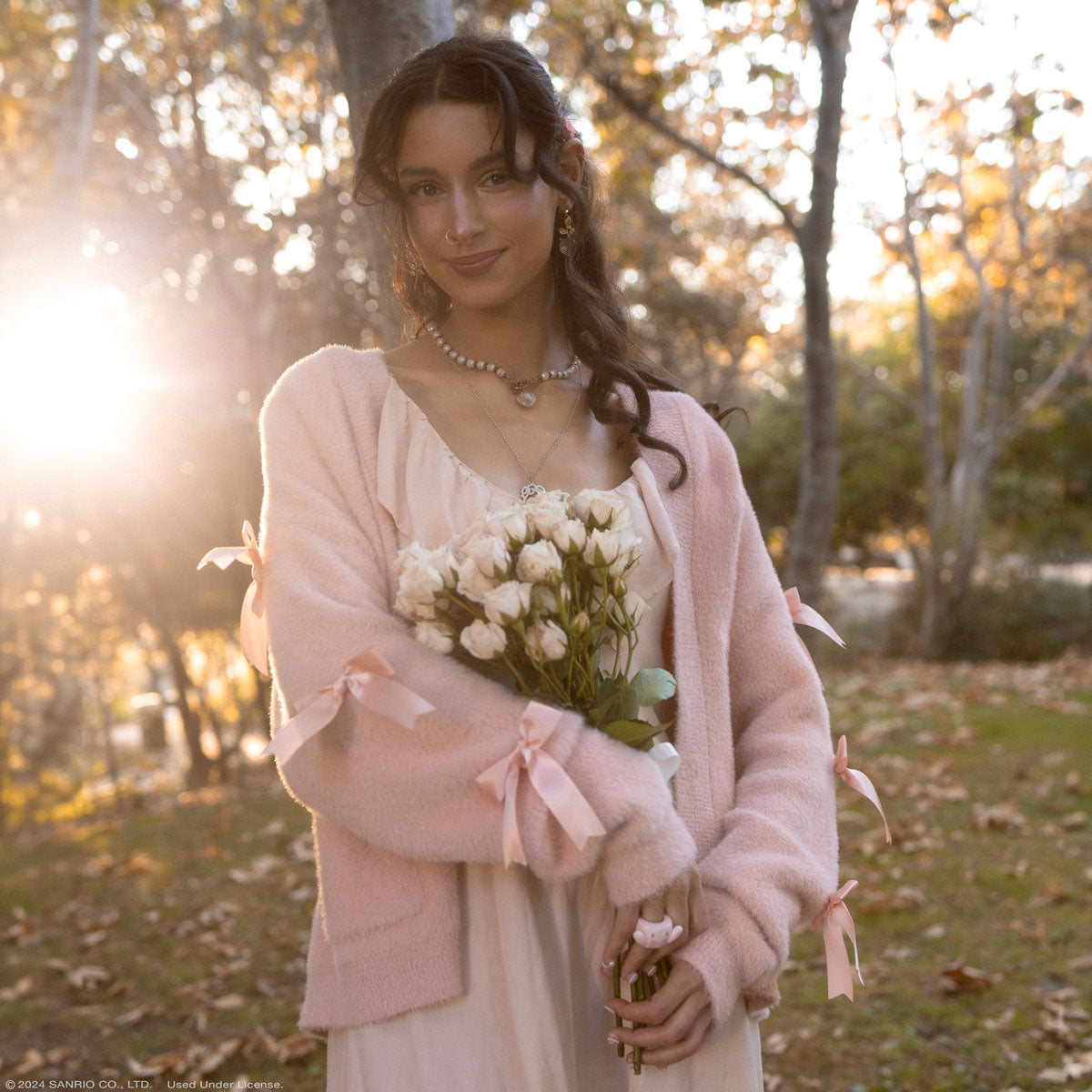 Stay stylishly snug with the My Melody Cozy Kuma JapanLA Cardigan. This soft and fuzzy cardigan features dainty text embroidery, embroidered applique of My melody in a bear outfit in the front pocket and on the back, and satin bows along both sleeves. With your cozy companion by your side, this cardigan is perfect for lounging on lazy days or keeping warm on chilly outings!
