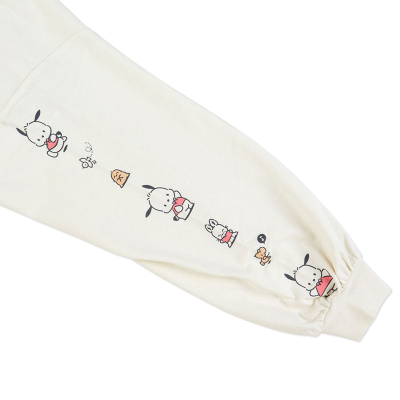 Get cozy in this playful and stylish Sanrio Sleeve Print Sweatshirt. With embroidered details on the front and a fun print of your favorite characters and their friends on the sleeves, this comfy sweatshirt is perfect for any occasion - whether you're staying in or heading out for some fun.